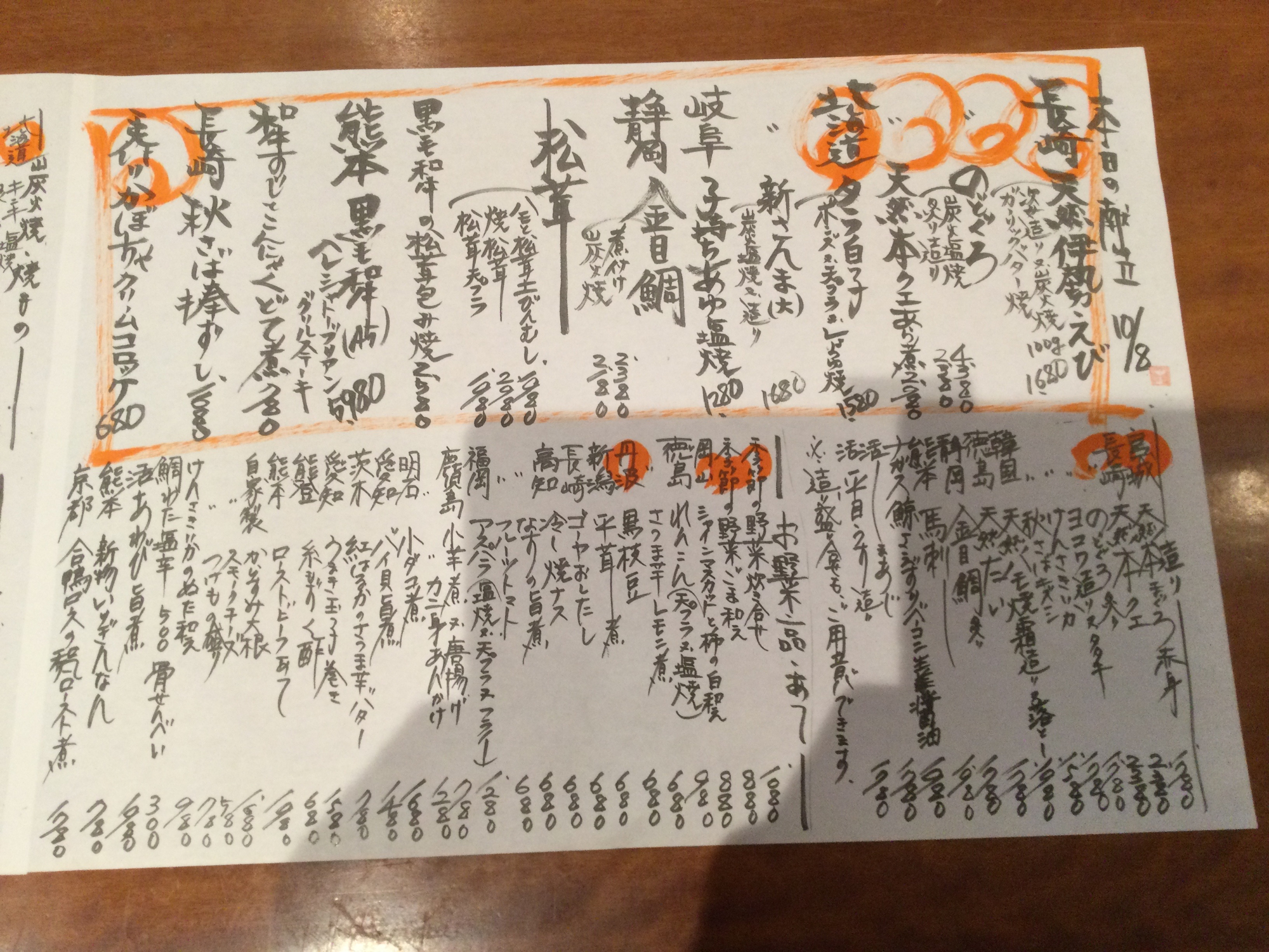 10月8日単品メニュー