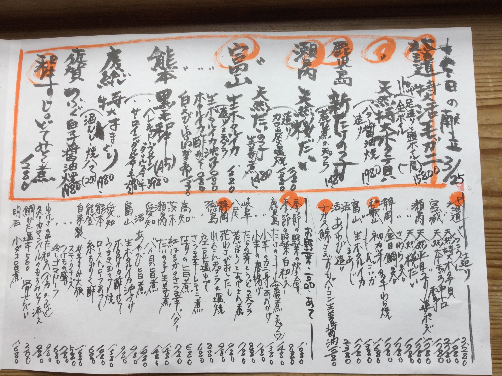 3月25日単品メニュー